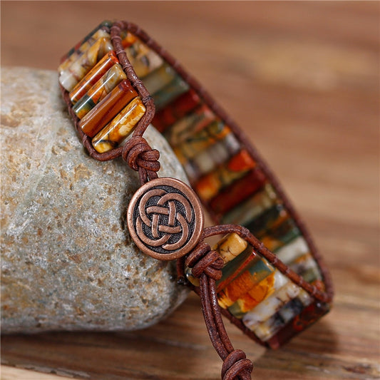 Natural Mixed Jasper / Black Labradorite / Blue Quartz Wrap Bracelet