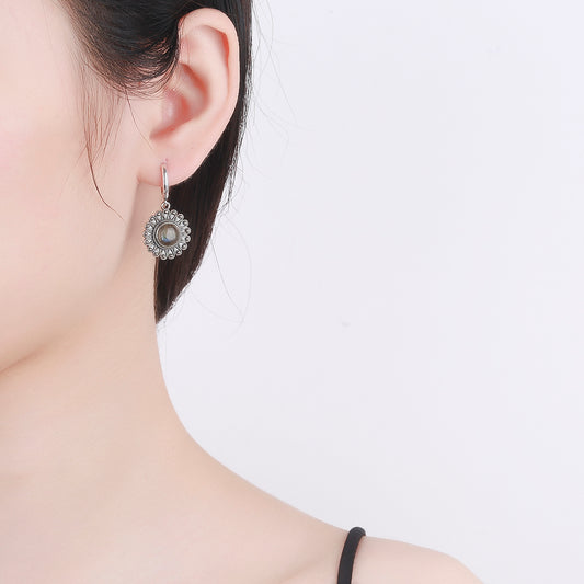 Ethnic Silver Earrings with Natural Turquoise Stone