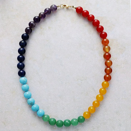 Natural 7 Chakra Stones Gold Plated Choker Necklace