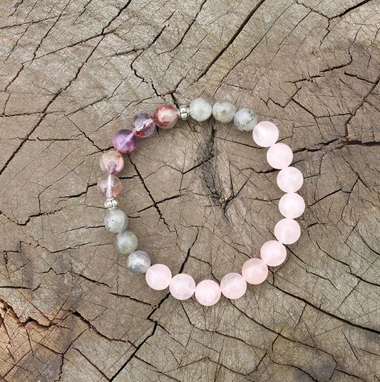 Natural Amethyst, Rose Quartz, Agate & Hematite Leather Wrap Bracelet