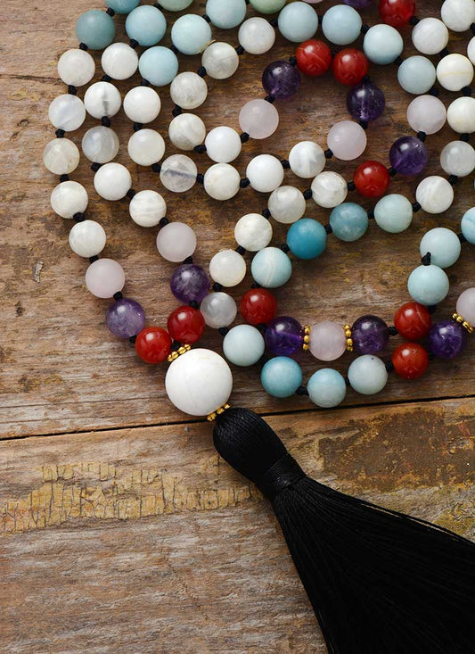 Natural Moonstone, Onyx, Amazonite & Amethyst 108 Beads Mala Necklace