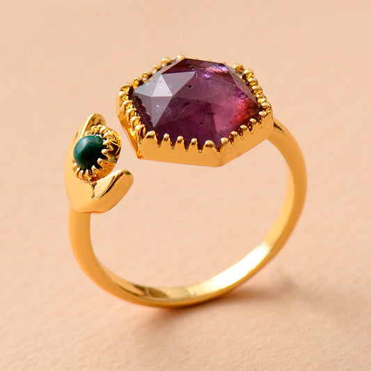 Natural Amethyst & Crystals Leather Wrap Bracelet