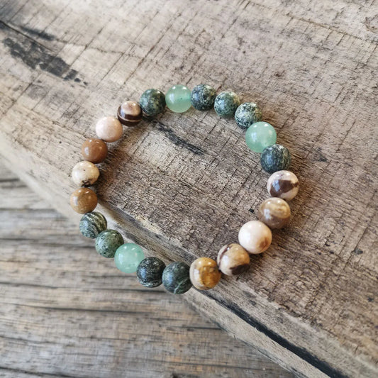 Natural Green Red Zebra Jasper & Aventurine Necklace Bracelet Set