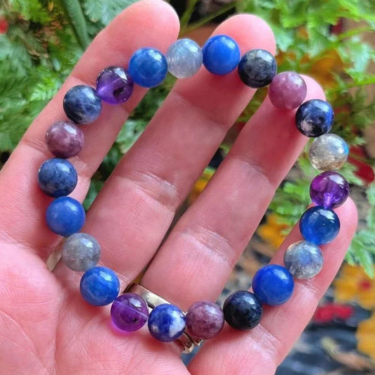 Natural Kyanite, Labradorite, Amethyst & Quartz Beaded Bracelet