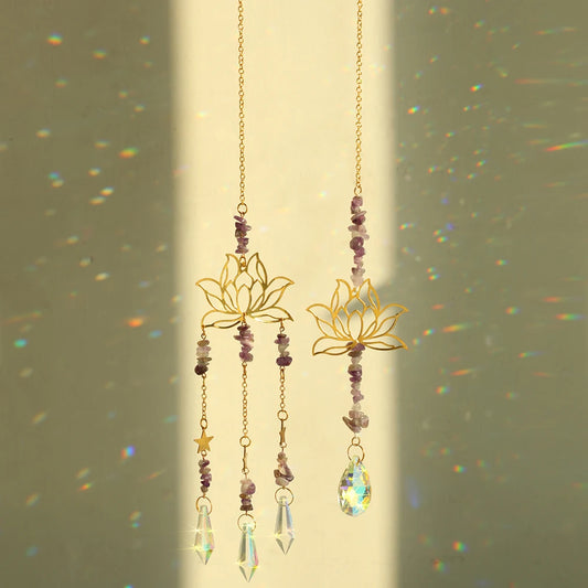 Natural Amethyst & Crystal Glass Lotus Suncatcher Set