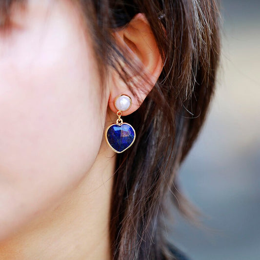 Natural Heart Shaped Lapis Lazuli Stud Earrings