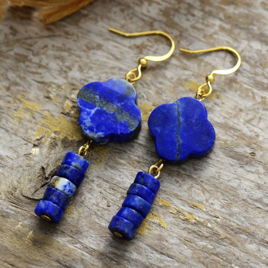 Natural Lapis Lazuli Four Leaf Clover Earrings