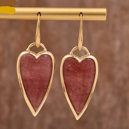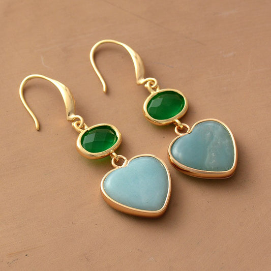 Natural Green Aura Quartz & Amazonite Heart Earrings