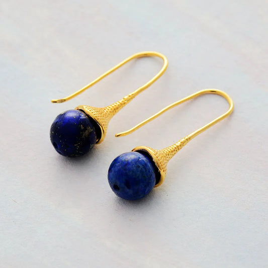 Natural Lapis Lazuli Amazonite Tiger's Eye Gold Plated Earrings