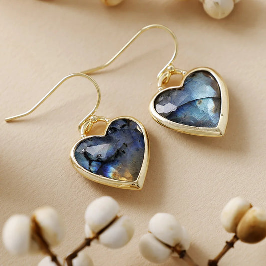 Natural Labradorite Romantic Heart Earrings