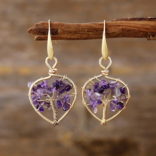 Natural Mixed Gemstones Tree of Life Earrings