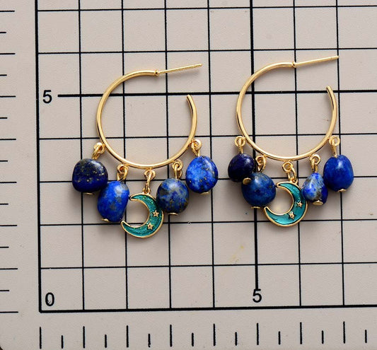 Natural Lapis Lazuli Good Night Moon Hoop Earrings