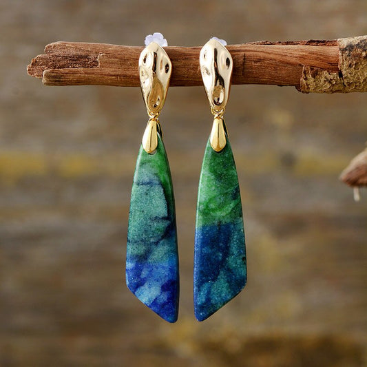 Natural Ocean Jasper Gold Plated Oval Earrings