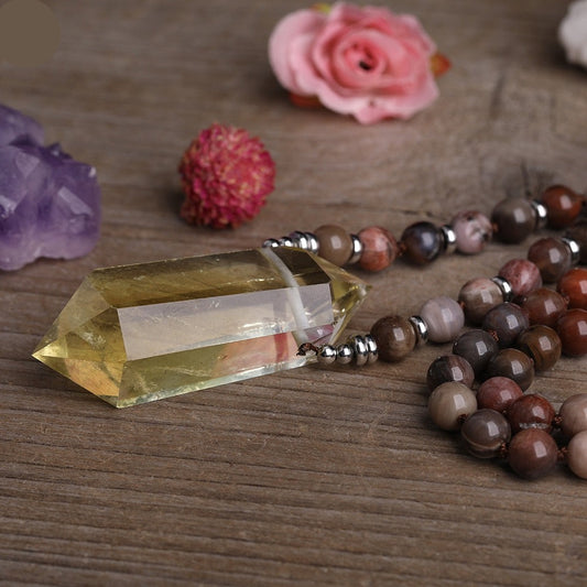 Natural Fossil Wood Jasper & Citrine Wand Pendant Necklace