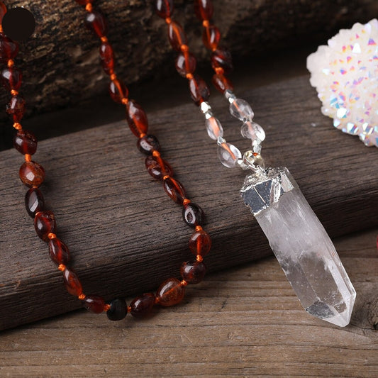 Natural Red Garnet & Clear Quartz Wand Necklace