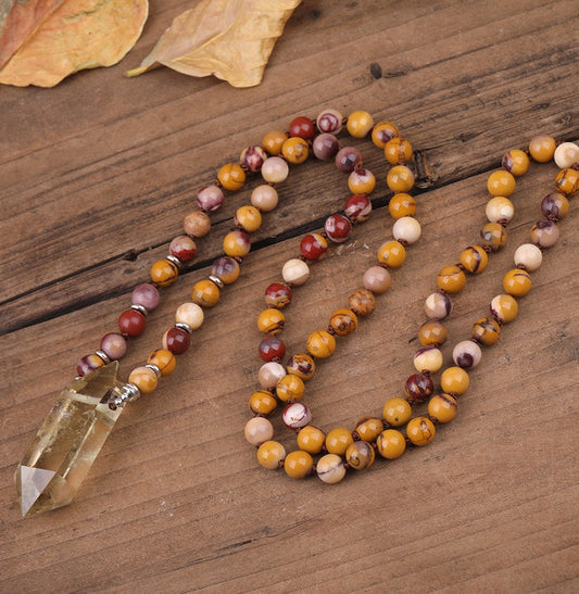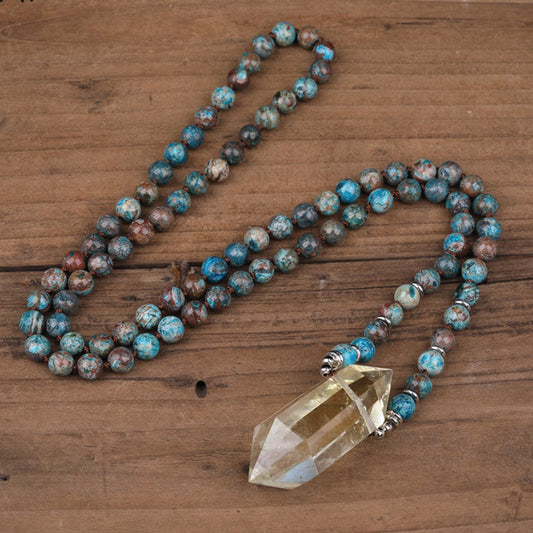 Natural Smokey Yellow Quartz Double Point Pendant and Yellow Jasper 108 Mala Beads
