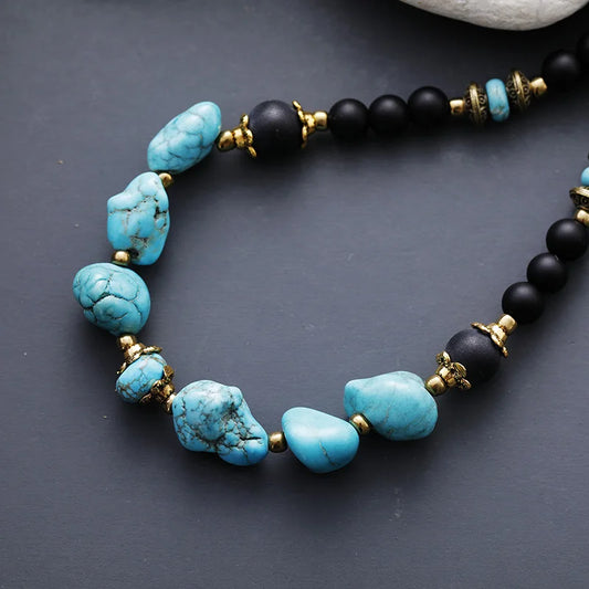 Natural Turquoise & Onyx Choker Necklace
