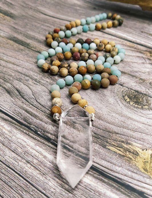 Natural Jasper, Amazonite & Clear Quartz Wand Necklace