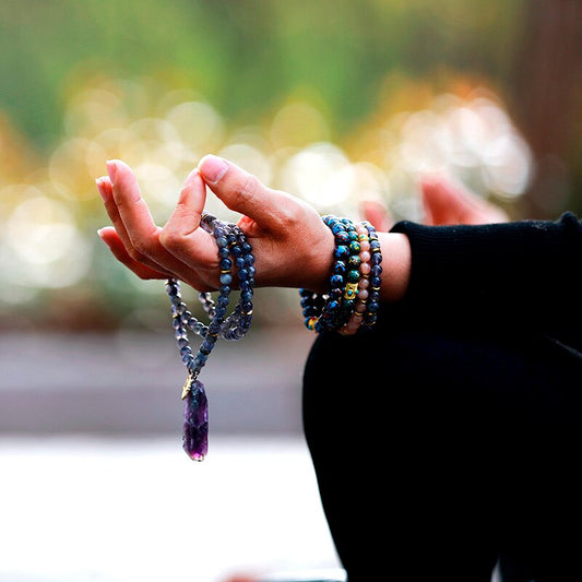 Natural Iolite 108 Mala Beads Necklace