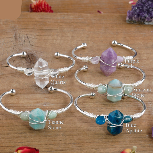 Natural Gemstone Double-Point Wand Cuff Bracelet