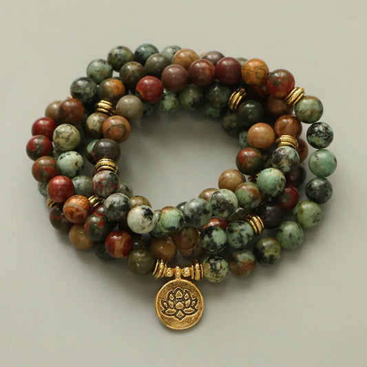 Natural Picasso Jasper & African Turquoise 108 Beads Mala