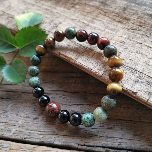 Natural African Turquoise, Tiger's Eye & Onyx 108 Beads Mala Necklace / Bracelet