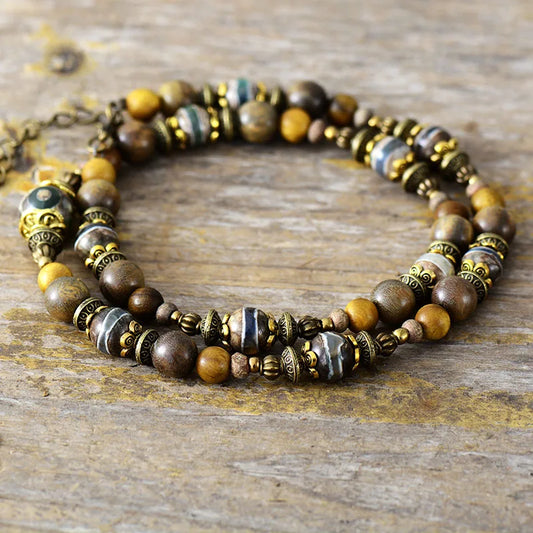 Natural Green Sandalwood & Dzi Beads Choker Necklace