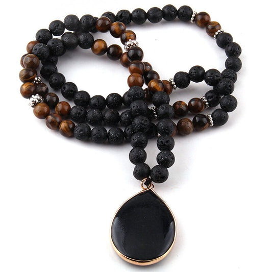 Natural Lava Stone, Tiger's Eye and Black Onyx Pendant Aromatherapy Necklace