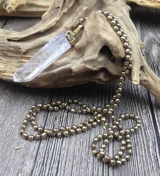 Natural Gold Hematite & Clear Quartz Necklace