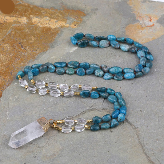 Natural Blue Apatite & Clear Crystal Nugget Beads Necklace