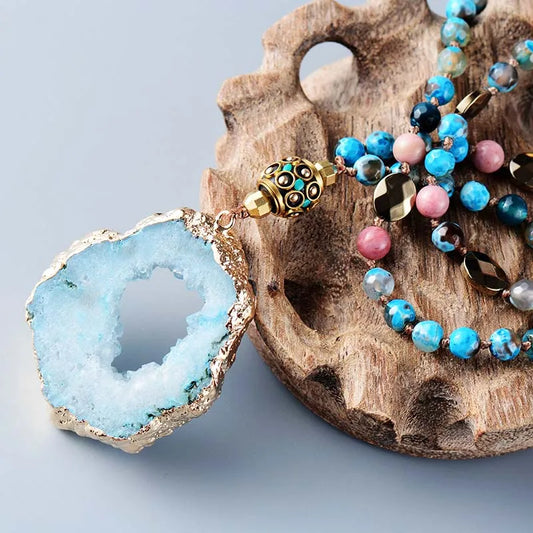Natural Jasper, Rhodonite & Onyx Druzy Necklace