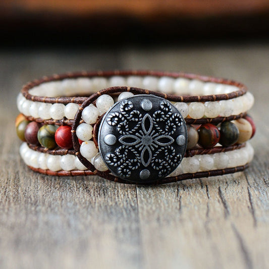 Natural Picasso Jasper & Agate Leather Wrap Bracelet