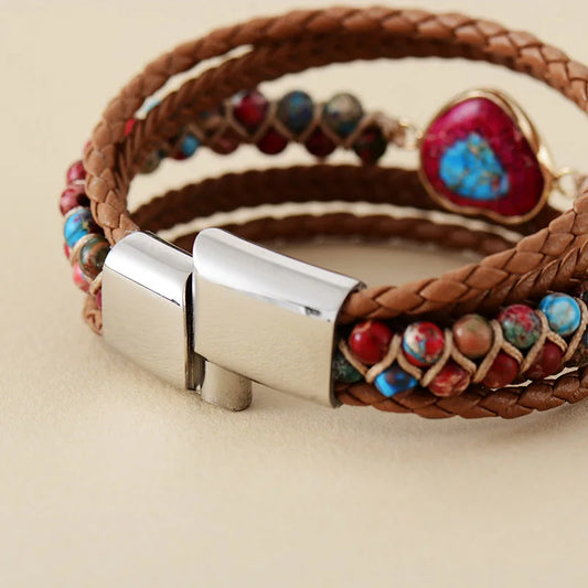 Natural Red Sediment Stone Heart Wrap Bracelet