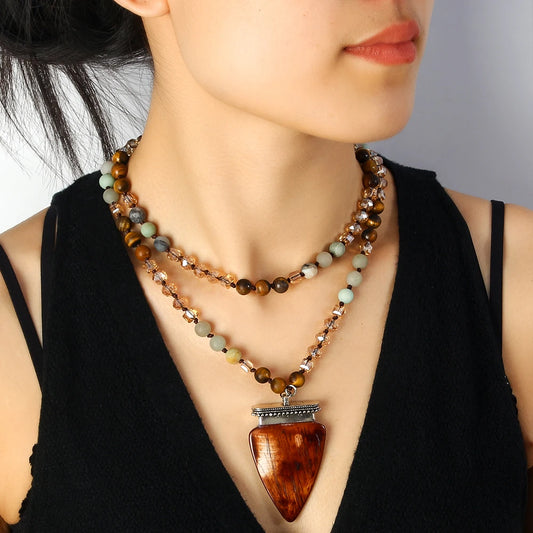 Natural Amazonite & Tiger’s Eye Arrowhead Pendant Necklace