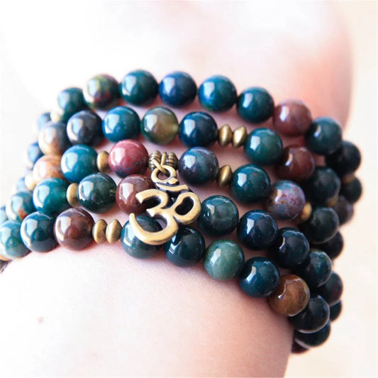 Rare Natural Indian Agate & Apatite 108 Beads Om Mala