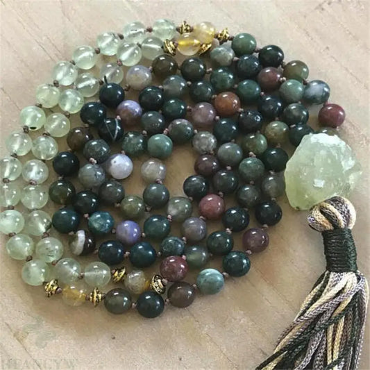 Natural Indian Agate & Green Quartz 108 Beads Mala
