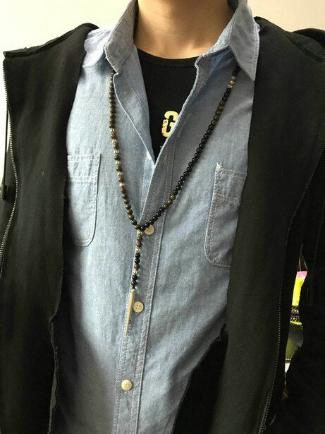 Natural Bronzite & Black Onyx Spike Pendant Necklace