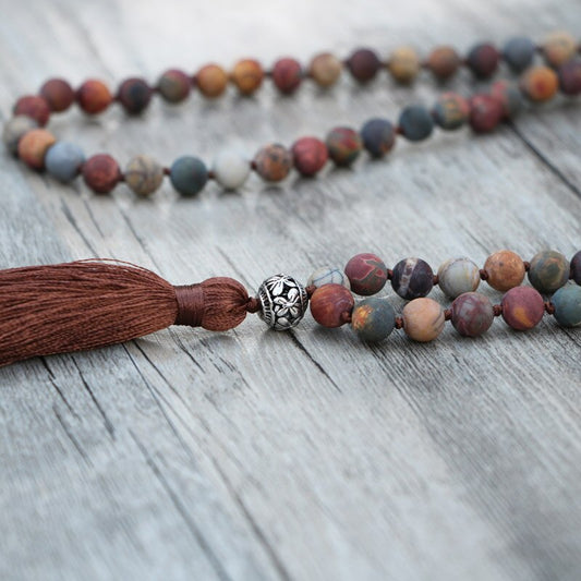 Natural Matte Picasso Jasper 108 Beads Mala Necklace