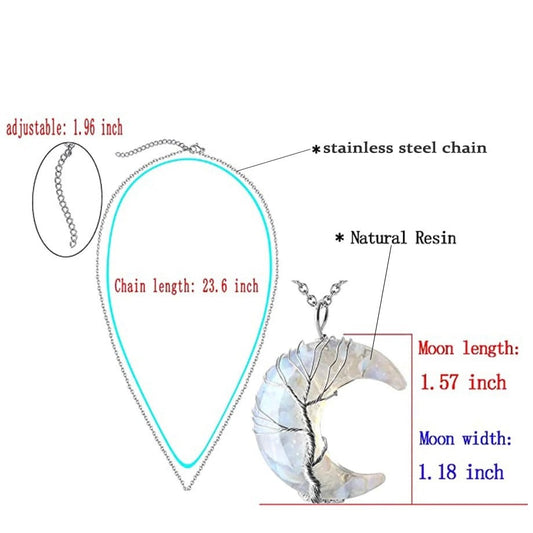 Natural Tiger's Eye Tree of Life Moon Necklace