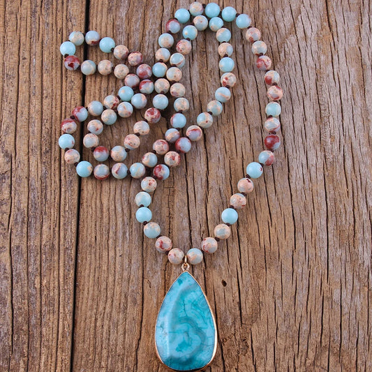 Natural Matte African Turquoise, Picasso Jasper & Onyx 108 Beads Mala