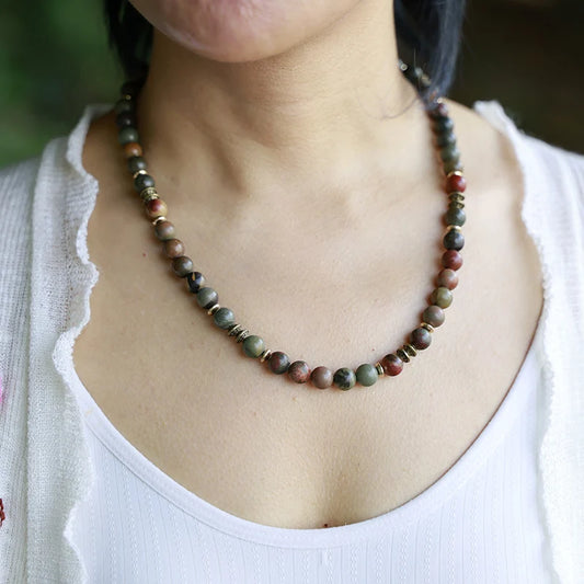 Natural Mixed Jasper Malachite & Amethyst 108 Beads Mala Necklace
