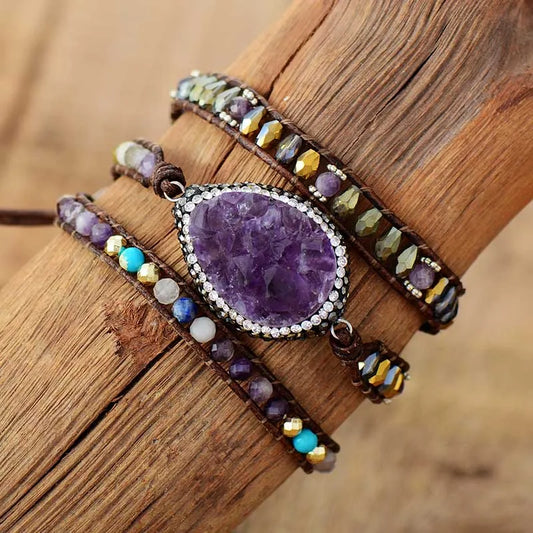 Natural Amethyst Druzy & Mixed Stones Wrap Bracelet