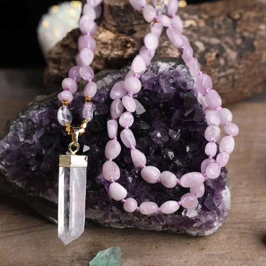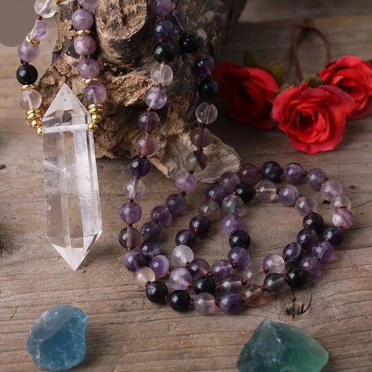 Natural Amethyst & Clear Quartz Double Point Pendant
