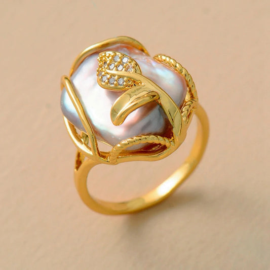 Natural Amazonite, Apatite & Pearl Gold Plated Ring