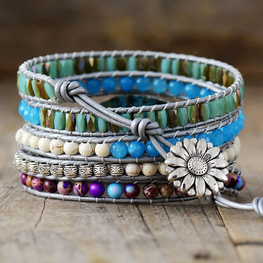 Natural Ocean Jasper & Mixed Gemstones Wrap Bracelet