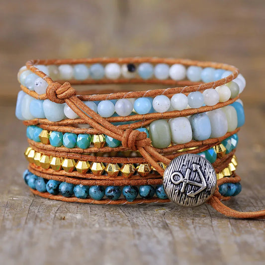 Natural Amazonite & Sea Jasper Wrap Bracelet