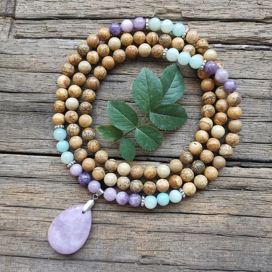 Natural Picture Jasper,Amazonite & Lepidolite 108 Beads Mala