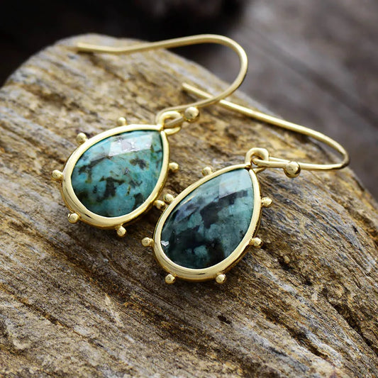 Natural African Turquoise Gold Plated Earrings
