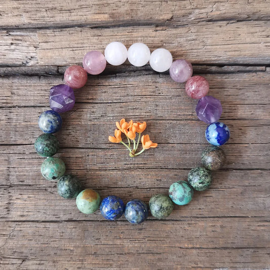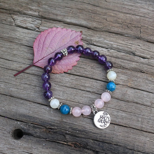Natural Amethyst, Rose Quartz, Apatite & Moonstone Bracelet