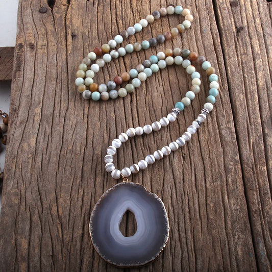 Natural Amazonite & Agate Bohemian Necklace